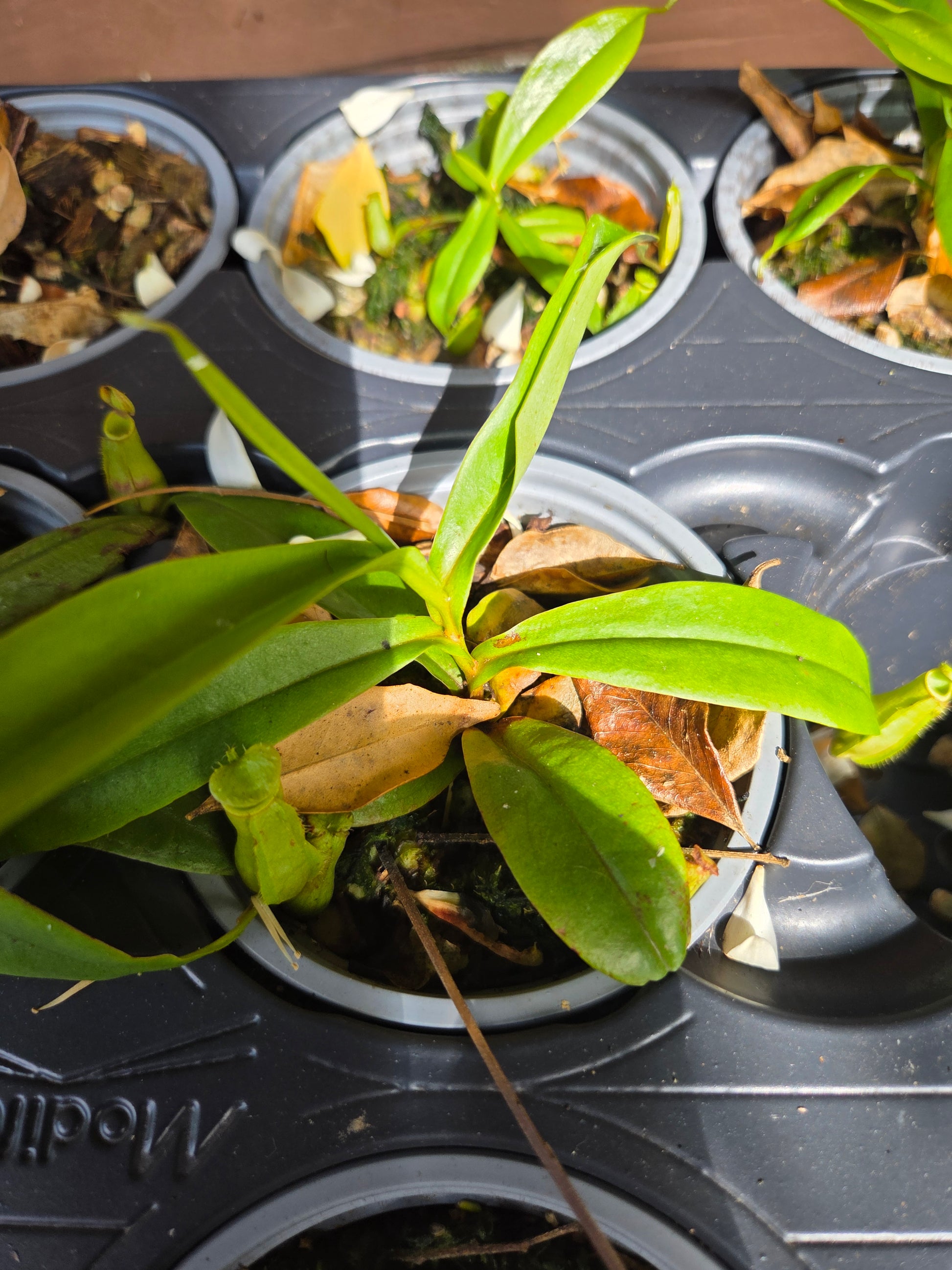 A very underrated Nepenthes species that has simplicity in its pitchers. These are seed grown and currebtly are green but under better light it appears they will turn a pick to red colour. Very quick growing and likes to vine.